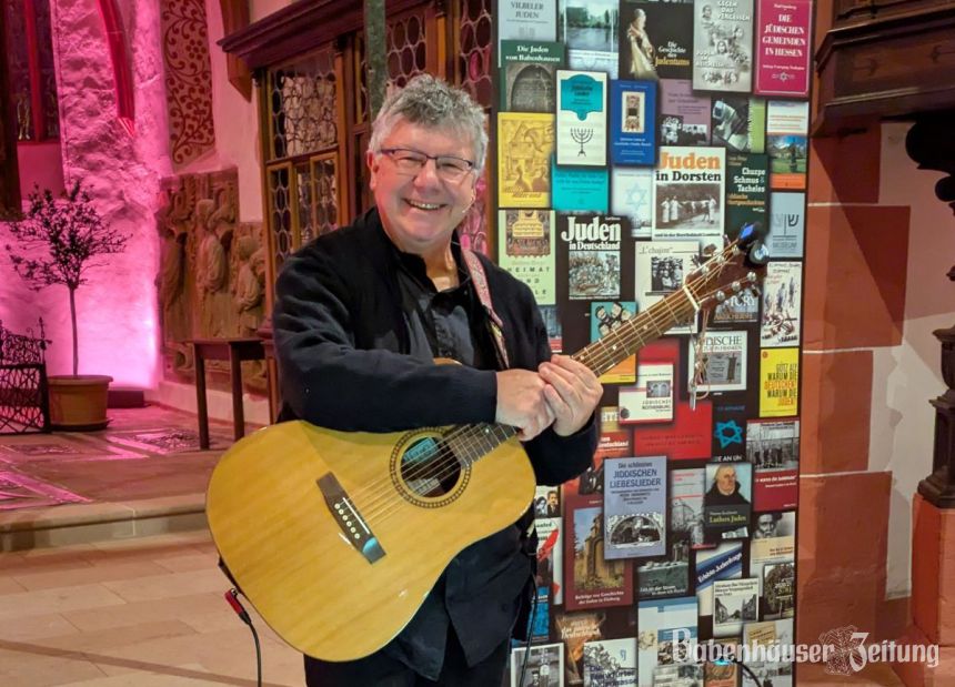 Anlässlich des Gedenkjahres „1700 Jahre jüdisches Leben in Deutschland“ gestaltete der Odenwälder Liedermacher Jürgen Poth, im Jahr 2021, einen außergewöhnlichen Konzertabend. Außergewöhnlich aus verschiedenen Perspektiven. Zum einen aufgrund der Verschmelzung des Jiddischen und dem Hebräischen sowie deren entlehnten ins deutsche übernommenen Wörter (Massel, Meschugge oder Mischpoke) – eine mehr als gelungene Kombination. Außergewöhnlich war auch die Musikzusammenstellung, von Volksliedern über Kinderlieder bis zu irischen Einflüssen, stellte Jürgen Poth seine große Bandbreite unter Beweis. Außergewöhnlich auch aus heimatkundlichen Aspekten, denn Jürgen Poth verknüpfte mit seiner Anmoderation der Lieder, verschiedene Hintergründe von jüdischen Nachbarn aus Babenhau- sen. Hier ging Poth auch auf die Zeit des Nationalsozialismus ein und berichtete über Schreckenstaten, die sich in Babenhausen ereignet haben. Die Namen Frank, Seewald, Idstein und Oppenheimer stehen exemplarisch für die zahlreichen entrechteten Babenhäuser mit jüdischem Glauben. Nur wenigen gelang die Flucht, die meisten Juden aus Babenhausen wurden in Ghettos oder Konzentrationslagern ermordet. Außergewöhnlich war der Konzertabend auch unter dem Hintergrund, dass sich aufgrund der geschilderten Ereignisse kein grauer Schleier über den Abend setzte. Außergewöhnlich die Verknüpfung zu „Reise-Tipps“ des Liedermachers, der ein Denkmal am Würzburger Bahnhof „DenkOrt Deportation“ ebenso vorstellte, wie die sehenswerte Synagoge in Pfungstadt und das Anne-Frank-Haus in Amsterdam.