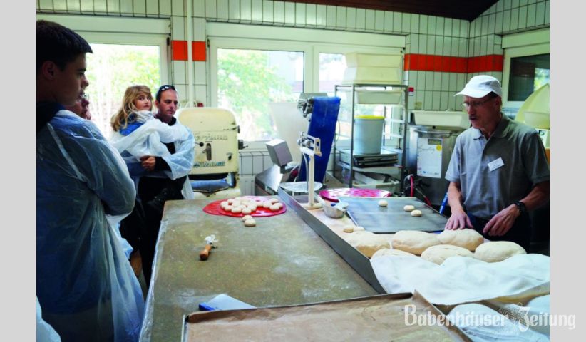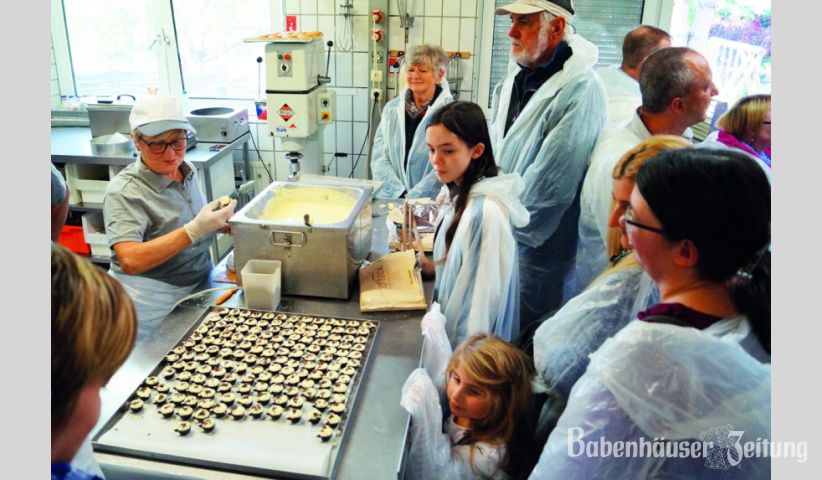 Am Tag der offenen Tür am vergangenen Sonntag waren besonders die Betriebsführungen durch die Backstube ein Kundenmagnet, denn beim einzigen noch richtig backenden Bäcker in der Kernstadt und den Stadtteilen, konnten die Besucher viel Wissenswertes erfahren. Den neuen Hygieneverordnungen folgend, mussten sie in Schutzanzüge schlüpfen und standen dicht gedrängt um die verschiedenen Stationen, bei denen Irmgard Volz Kaffeepralinen produzierte, der Chef Heinz Lautenschläger Brötchen knetete und Christian Reinhart und Jens Lautenschläger demonstrierten, wie Laugenbrezeln entstehen. Früher habe man schon öfters bei der „Nacht des Backens“ mitgemacht, die von der Bäckerinnung initiiert war und auch Betriebsführungen vorsah, die gerne angenommen wurden.