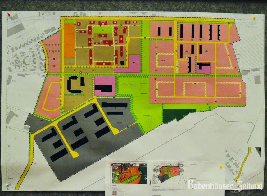 Nach der Vorstellung der seitherigen Entwicklungs-Schritte – vom Abzug der US-Army bis zur öffentlichen Informationsveranstaltung – durch den Stadtplaner der Stadt Babenhausen, Oliver Schreiner, wurde der aktuelle Planungsstand vorgestellt. Die Konversionsgesellschaft informierte in diesem Zusammenhang auch über die weiteren Verfahrensschritte. Daniel Beitlich, einer der Investoren der Konversionsgesellschaft, stellte in einer Präsentation die aktuellsten Informationen zusammen und berichtete auch über die seitherigen Veränderungen. Hier führte er unter anderem den geplanten Neubau einer Grundschule an und die Planabweichungen zu Lasten von größeren Bürogebäuden hin zu einer Bebauung mit Einfamilienhäusern.