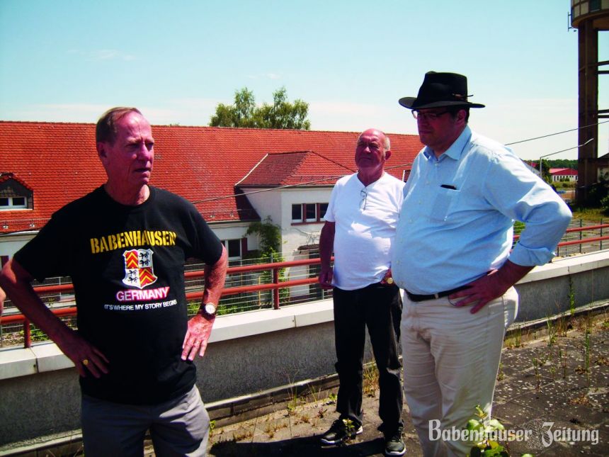Bürgermeister Achim Knoke machte den Besuch in dem inzwischen wieder geschlossenen Erstaufnahmelager möglich. Er erläuterte die jüngste wechselvolle Geschichte dieses Kasernenteilbereiches. Dabei ergänzte Snyder, der ein in den Staaten erworbenes T-Shirt mit der Aufschrift „Babenhausen Germany“ und dem Stadtwappen trug, dies immer wieder mit Erinnerungen aus seiner damaligen Dienstzeit. Nach der Kaserne wurde ein Stadtrundgang unternommen, wobei hier der Höhepunkt die zufällig möglich gewordene Besichtigung der Stadtkirche war. Daneben stand das Anwesen in der Friedrich-Ebert-Straße, wo sie zwischen 1964 und 1965 gewohnt hatten, auf dem Programm. Ein Vorgesetzter hatte Charles Snyder vor über 50 Jahren das Haus empfohlen. Mit der Familie Reinhold Mohrhardt, Nachfahre der seinerzeitigen Vermieter, fand eine herzliche Begegnung statt, wobei die Enkel beider Seiten in fast gleichem Alter „schöne Gemeinsamkeiten“ austauschten. wi.