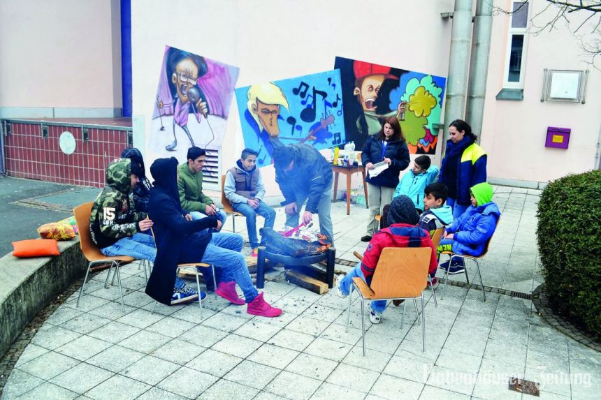 Ganz entspannt sammelten sich die Jugendlichen um die warme Feuerschale und während man darauf wartete, dass die Würstchen und Geflügelteilchen gar wurden, konnte man sich die Erlebnisse der letzten Woche erzählen. Aus der HEAE in der ehemaligen Kaserne waren auch neun Jugendliche mit einer Betreuerin dazugekommen. Obwohl „Freitagnachmittag im JuZ“ schon zu einem festen Termin im Camp gehört, war es doch sehr ungewöhnlich, bei diesen Temperaturen freiwillig im Freien zu chillen. Das Grillen wurde nach anfänglichem Befremden jedoch schnell zum Highlight für die jungen Leute. Nach etwa zwei Stunden waren alle satt und das Feuer heruntergebrannt und so wurde die Veranstaltung nach unten ins Jugend Café verlegt, wo man bei Tischkicker, Darts, Billard und Playstation noch lange zusammen verweilte. Um den Jugendlichen mehr zu bieten als nur „Abhängen im Jugendzentrum“ überlegt sich das Team der Jugendförderung immer wieder besondere Events. Seit diesem Jahr neu im Angebot sind auch die besonderen Öffnungszeiten an jedem ersten Freitag im Monat, wo es von 19 bis 24 Uhr „16+“ heißt.