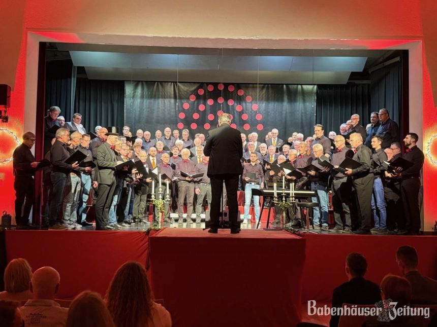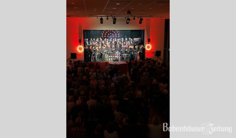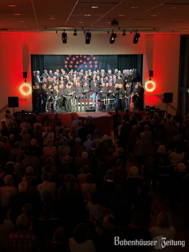 Nach der Pause – und einem großen Dank an alle Helferinnen und Helfer hinter den Kulissen – folgte der Moment, dem viele entgegengefiebert hatten: Der gemeinsame Auftritt aller drei Chöre. Rund 100 Sänger füllten die Bühne und verwandelten die Kulturhalle in ein vibrierendes Klangzentrum.