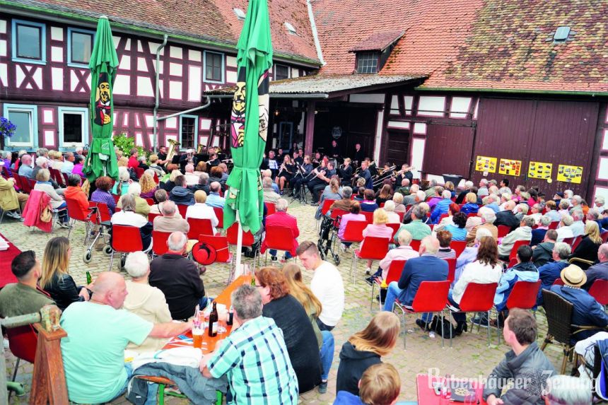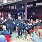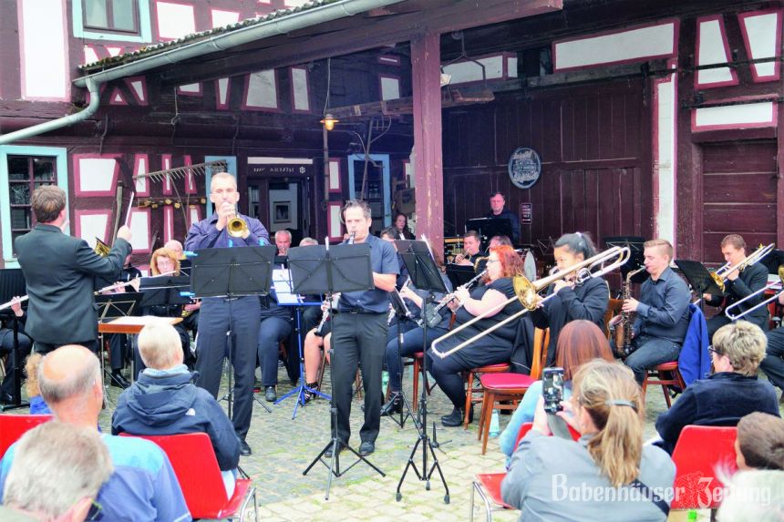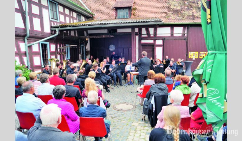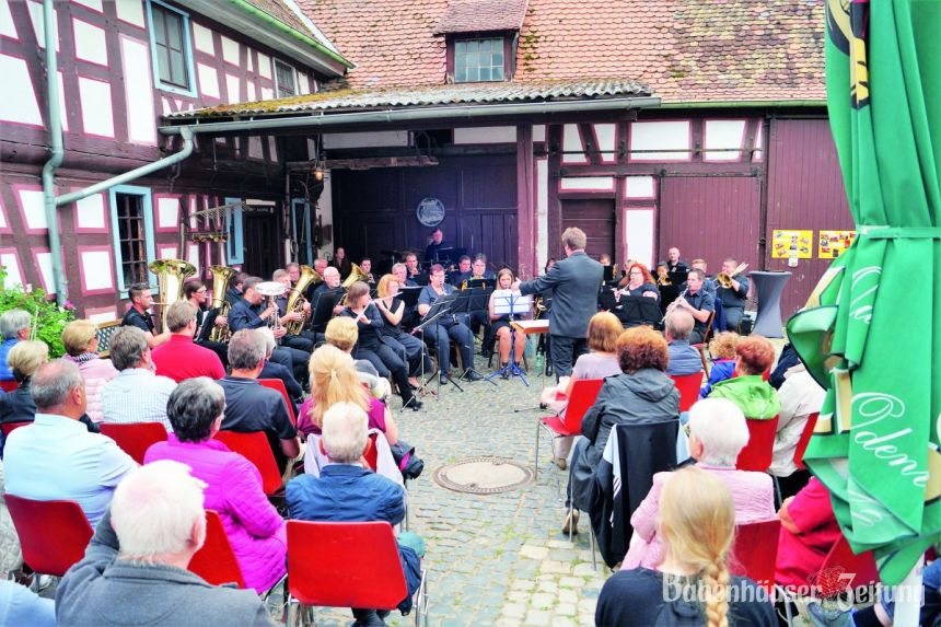 Unter der Leitung von Patrick Günther zog das 30-köpfige Orchester die Zuhörer im dicht besetzten Hof der Langfeldsmühle in seinen Bann.