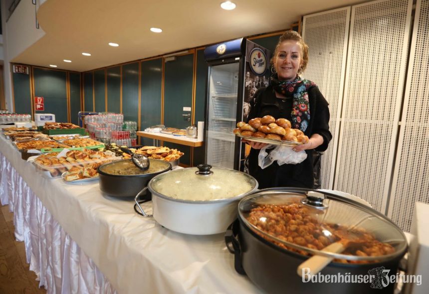 Die Hilfsbereitschaft in Babenhausen sei schon bei den Vorbereitungen enorm gewesen. Viele Frauen, überwiegend aus türkisch-stämmigen Familien, hatten landestypische Speisen mitgebracht, einige kochten auch vor Ort. So gab es lange Tischreihen, auf denen Salate, Teigtaschen mit verschiedenen Füllungen, Eintöpfe, gefüllte Weinblätter und andere Köstlichkeiten miteinander wetteiferten. Die Speisen vom Büffet, sowie die hochwertigen Kleidungsstücke, Spiele und Artikel aus der Unterhaltungselektronik, die ein Geschäftsmann gestiftet hatte, konnten gegen eine Spende erworben werden.