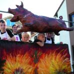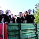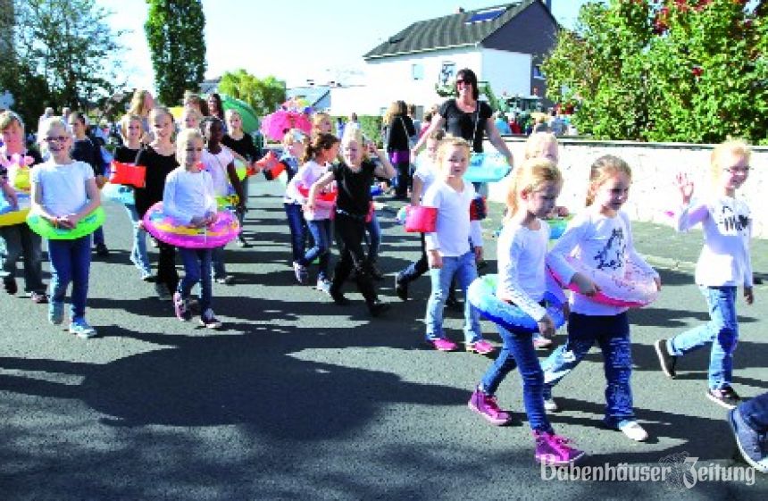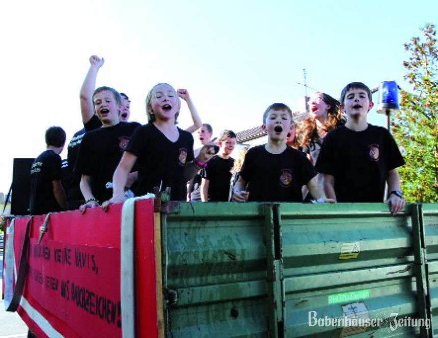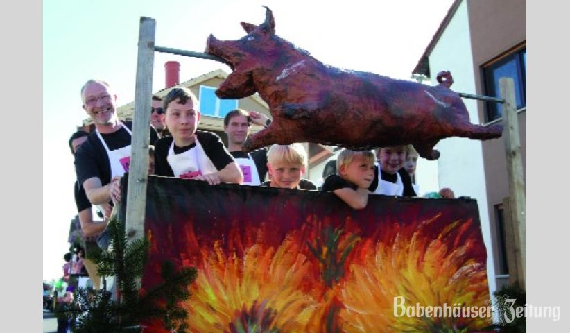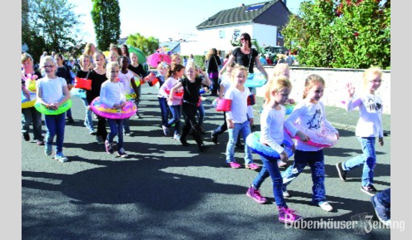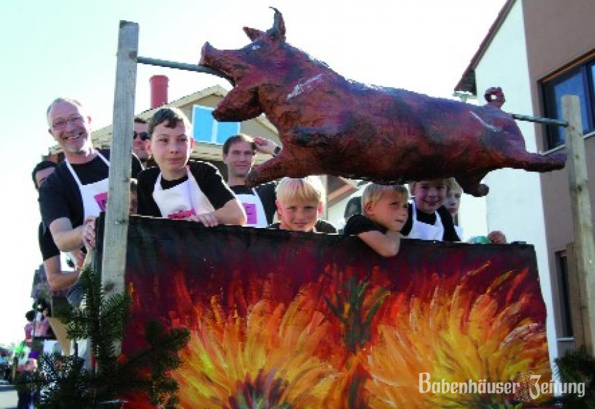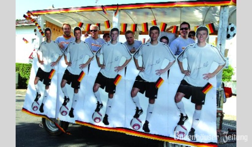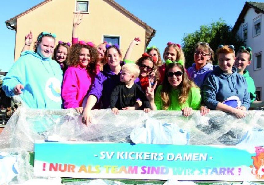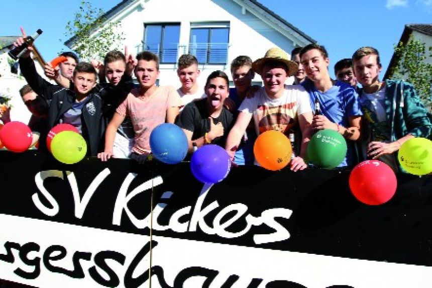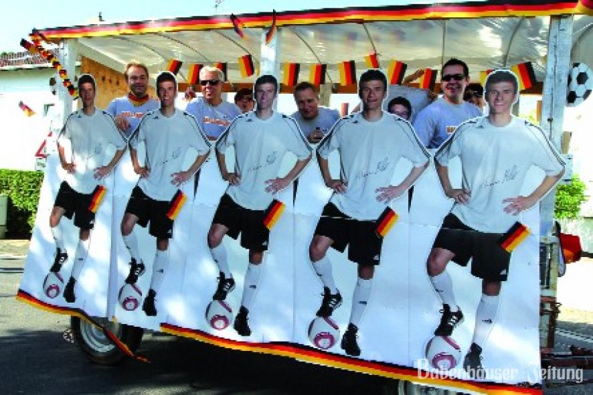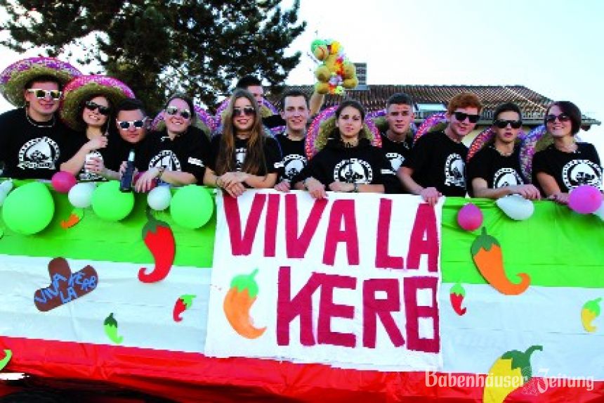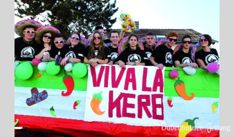 Da gab es Spanferkel aus Pappmaschee von den Hergershäuser Neubürgern, die selbstironisch fragten: „Baust du noch oder grillst du schon?“ Die Kerbburschen und -mädels waren unter dem Motto „Viva la Kerb“ als Mexikaner unterwegs, während die Jugend des TVH, als Ausrichter der diesjährigen Kerb, mit Schwimmreifen und Badeanzügen durch die Gassen liefen. Das Wetter spielte glücklicherweise mit und bescherte dem Kerbumzug und seinen Zuschauern hochsommerliche Temperaturen und einen wunderbar blauen Himmel, der Erinnerungen an die Fußball-Weltmeisterschaft im Sommer wachrief. Die WM hatten die Kickers zu ihrem Umzugsmotto gemacht.