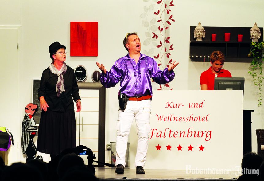Den Ausruf „Grand Malheur“ werden die Besucher des gleichnamigen Theaterstücks im ausverkauften Hergershäuser Bürgerhaus in den folgenden zweieinhalb Stunden noch oft hören. Denn im Kur- und Wellnesshotel „Faltenburg“ läuft so einiges schief, was Jean-Pierre, gespielt von Alexander Buia, stets auf die gleiche Weise kommentiert.