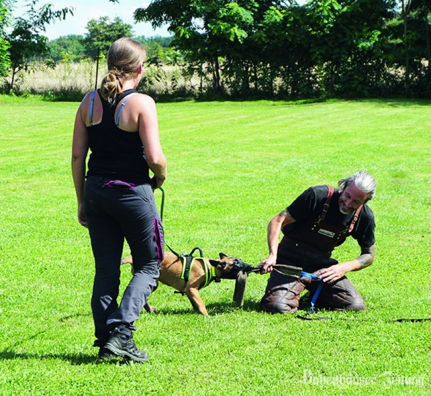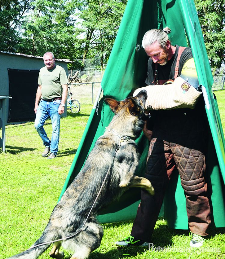 Einblicke in den Schutzdienst – Schäferhund Zeus stellt Nikolaj Klaenhammer (1. Vorsitzender der Clumsy Dogs).