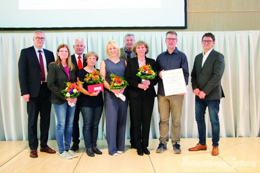 Am Freitag (17.) wurde den VereinsvertreterInnen des TVB der Heinz-Lindner-Preis, in Rahmen einer kurzweiligen und würdevollen Veranstaltung, in der Sportschule in Frankfurt verliehen. (v.li.): Jens-Uwe Münker (Abteilungsleiter Sport im Hessischen Ministerium des Inneren und für den Sport), Ute Hehner (Geschäftsstelle TV Babenhausen), Ralf-Rainer Klatt (lsbh-Vizepräsident Sportentwicklung), Dorothea Scharwinski (Finanzwartin TV Babenhausen), Andrea Zemke (Sportmanagerin TV Babenhausen), Dr. Rolf Müller (Präsident lsbh), Ute Teuchner (1. Vorsitzende TV Babenhausen), Bert Bernhardt (1. Vorsitzender TV Babenhausen) sowie Wolfgang Schmidt-Rosengarten (Referatsleiter im Ministerium für Soziales und Integration).